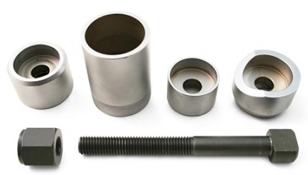 Removes and replaces metallic bushings on Mercedes passenger cars from 1984 and up