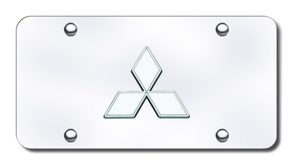 Stainless steel license plate featuring a 3D chrome <em>Mitsubishi</em> logo