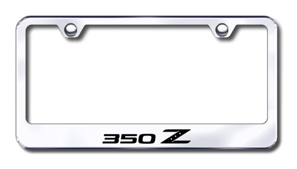 Laser-etched stainless steel license plate frame featuring Nissan <em>350Z</em> lettering