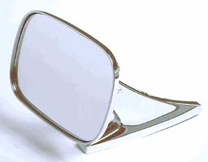 CIPA universal mount chrome side view car mirror uses existing mounting holes fitting both right and left hand sides. 5-1/4" x 3-3/4"