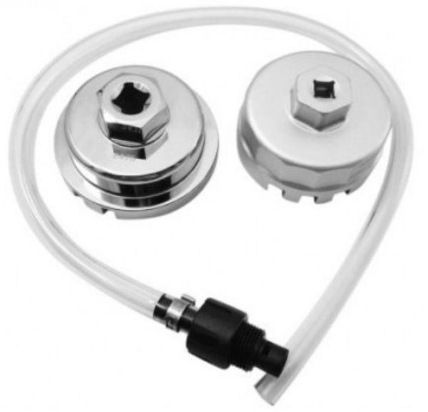 Comes with 2 flute oil filter wrenches and 1 oil drain hose