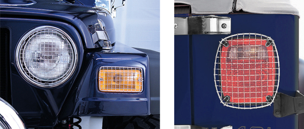 The 6-Piece Stone Guard Set features a durable wire mesh construction, which will protect your Jeep Wrangler's headlights from flying rocks and other road hazards. The stone guards are constructed of stainless steel with a satin finish giving your jeep a contemporary look found nowhere else.