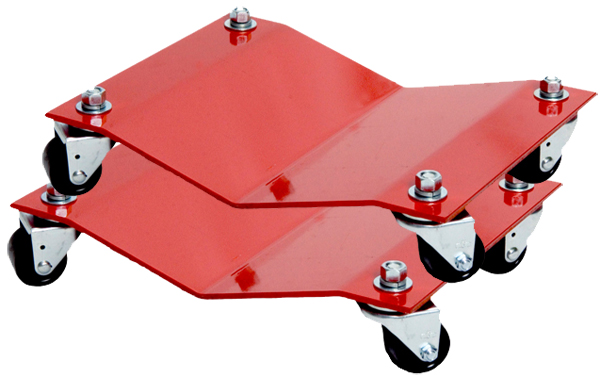 The Auto Dolly will quickly become one of the handiest tools in your garage, shop, or showroom. It is designed to allow one-person to move automobiles, trucks, lawn mowers, jet skis, motorcycles, and most other heavy vehicles with ease. Gain precious floor space by moving items right up against a wall or into a corner! The Auto Dolly is placed under each tire of the vehicle, making the vehicle a rolling cart that will now roll in any direction with ease. The large roller bearing casters make it simple for anyone to move the vehicle in any direction. Each standard Auto Dolly is rated to hold 1,500lbs. (3,000 lbs. total).