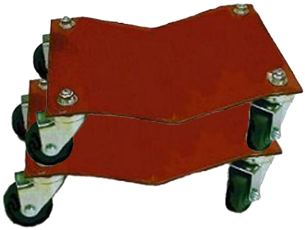 The Heavy-Duty Auto Dolly will quickly become one of the handiest tools in your garage, shop, or showroom. The Heavy-Duty Auto Dolly increases the capacity rating of an Auto Dolly set by 67%! Even 10,000 lbs can be moved in any direction with precision. It is designed to allow one-person to move automobiles, trucks, lawn mowers, jet skis, motorcycles, and most other heavy vehicles with ease. Gain precious floor space by moving items right up against a wall or into a corner! The Auto Dolly is placed under each tire of the vehicle, making the vehicle a rolling cart that will now roll in any direction with ease. The large roller bearing casters make it simple for anyone to move the vehicle in any direction. Each standard Auto Dolly is rated to hold 2,500lbs. (5,000 lbs. total).