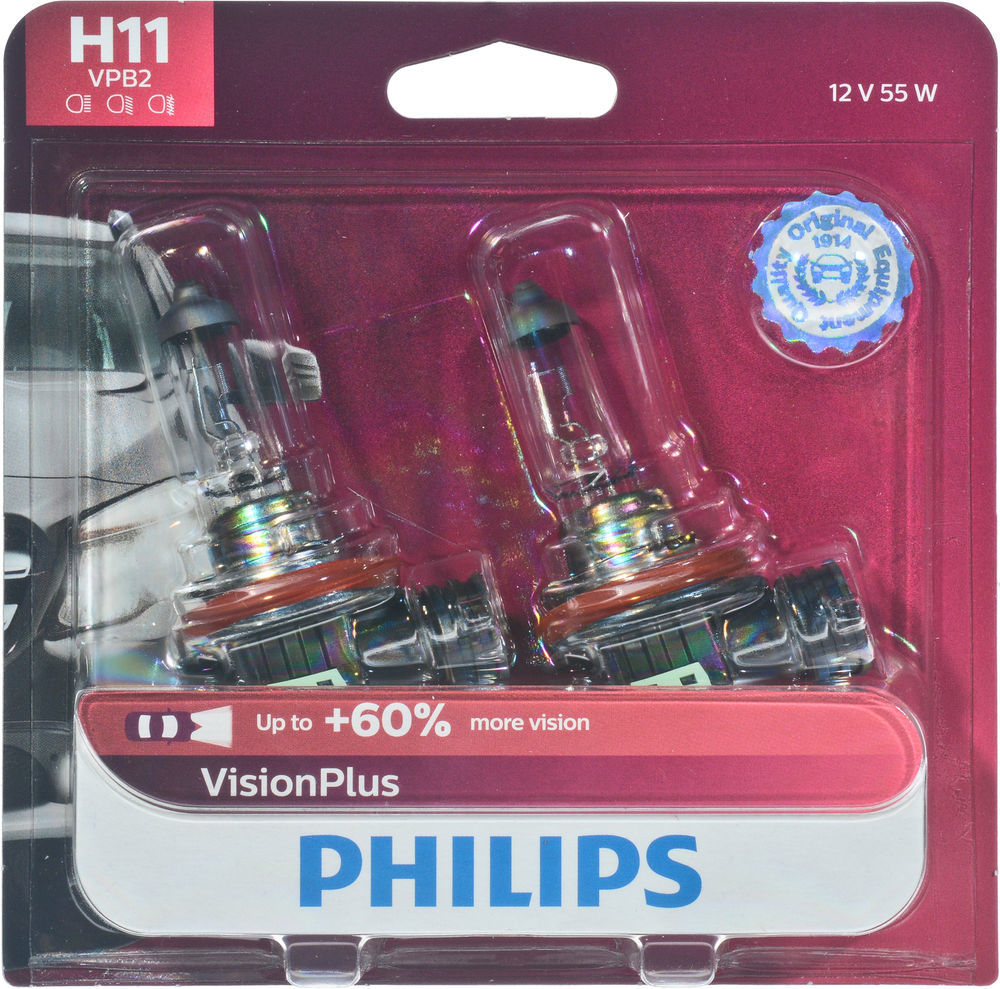 Philips H11 VisionPlus Headlight Bulbs (Pair)