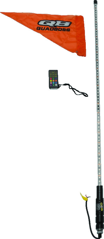 QuadBoss® LED Lighted Whips feature double-sided 5050 SMD LEDs housed in a flexible, transparent tube. Built-in chasing functionality with 300 color options, that's fully-customizable and pre-loaded with 200 patterns.Whip Light