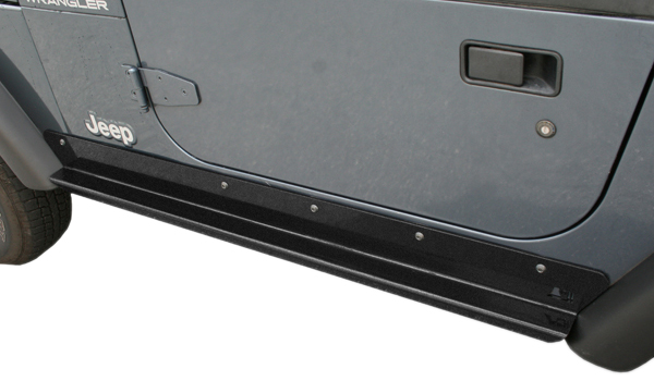 Heavy-duty rocker panels are designed to provide maximum protection for your Jeep's most vulnerable points. Manufactured from 3/16" thick steel plate with a tough black textured finish, these heavy-duty rockers can take a beating. Each features cutouts for use with off-road jack and a 2" step for easy access. To protect your vehicle's finish rubber gaskets are utilized to seal and protect the paint and body. For use with most aftermarket fender flares. Sold as a pair.