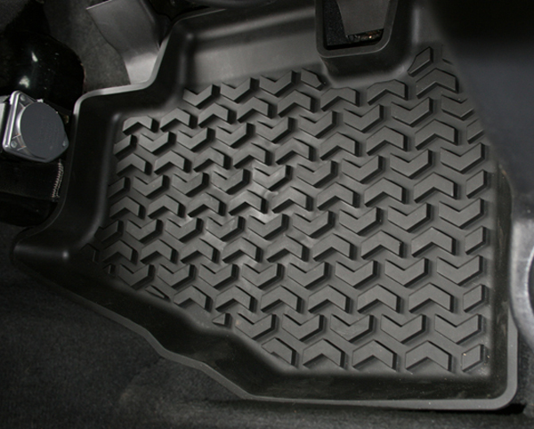 The only floor liner with patent pending Deep Tread technology! These floor liners are a totally new concept that combines all the best features of precision engineering using state of the art a deep ribbed floor mat and the old style liners. Precision engineering using state of the art technology ensures an exact fit to the shape and contour of your vehicle�s floor. The deeply molded Chevron-shape tread pattern channels dirt, mud and snow away from the driver to keep shoes and pant legs clean, containing the movement and sloshing around of any trapped water. The high perimeter wall offers a large footprint and maximum interior protection and containment. Constructed of all weather injected-molded durable OE-quality Thermo- plastic Elastomer (TPE). Raised nibs on the bottom provides maximum retention and keeps the liner in place. The self-sealing floor hook attachment feature (where applicable) helps to prevent dirt and moisture from getting through. Easy to remove and clean. Simply hose them off and go!!! The mat actually reseals itself around the hook! Sold as a pair.