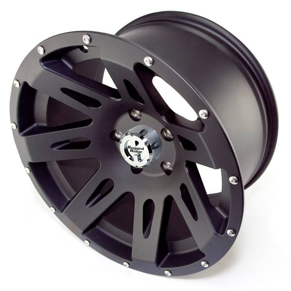 Rugged Ridge is proud to introduce the toughest new design in custom wheels. This Hub-Centric design exactly centers the wheel over the hub providing the best fit possible and the proper clearance for brake rotors, steering components and suspension. Better fit, no wheel vibration! Stainless steel button-head socket cap screws around the perimeter of the outer wheel face give a great 3-piece look, and also let you accessorize with our optional trim ring. Each wheel includes a UV-treated polished center cap that replicates a manual hub for that off road look. The durable powdercoated finish gives an ultra-hard finish for long life and a great look. The chrome finish uses a dual-stage process to give a deep reflective mirror-like chrome finish that commands attention. Rugged Ridge wheels have been independently tested and certified to meet/exceed SAE J2530 standards for wheel strength and durability. Limited lifetime structural warranty and 1 year finish warranty (see warranty information for details and limitations).