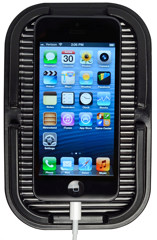 Skid proof surface tray holds most smartphones & cell phones