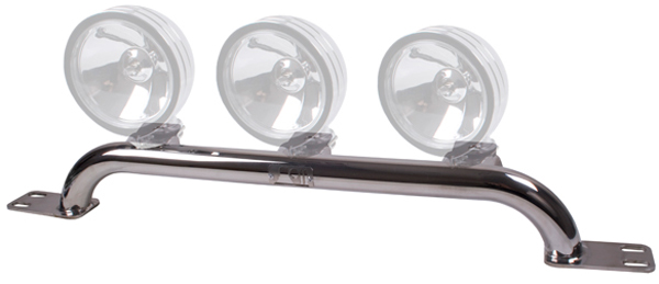 Constructed of stainless steel with a polished finish. The light bar bolts to existing mounting holes and installs easily without cutting, drilling, or removing the bumper. With a few simple hand tools you will be able to install your light bar and mount up to three lights on your Jeep while retaining your factory bumper.