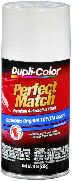 Dupli-Color's Super White II Auto Touch-Up Spray Paint, color code 040, is an OEM EXACT-MATCH for the 1985-2014 Scion and Toyota vehicles. Dupli-Color's Metallic Auto Touch-Up Paint outperforms the competition and produces a durable, factory-match finish quickly and easily. Do it yourself and avoid the high prices of the professionals, while still achieving professional results! Price is for one 8 oz. spray can.