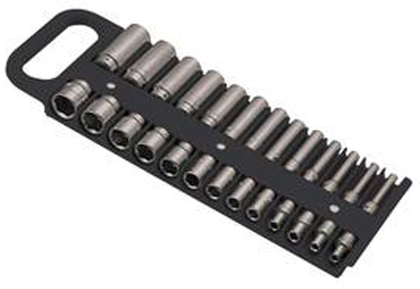 Twenty-six seperate socket compartments allow you to keep your 1/4" drive standard and deep sockets in one convenient holder. Holds sockets up to 5/8" or 15mm. Design of holders leave sockets exposed or easy identification. Powerful magnets securely hold sockets in tray and tray to any steel surface. Made of strong ABS plastic. Works with impact or chromed sockets.