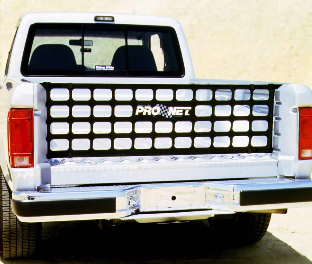 Every Pro Net features the patented high-performance, even-tensioning design that requires only four mounting holes to produce a perfectly flat, sag-free installation. Every ProNet™ is precision cut from heavy 22 oz. vinyl coated polyester, industrial quality "truck tarp" fabric, specially engineered to resist stretching and abrasion. The baked-on vinyl coating is stainproof, washable and totally waterproof. The ProNet™ does not require the removal of the original tailgate and allows the use of both. With the tailgate down, the ProNet™ provides improved airflow and increased rear visibility. When required, proper cargo containment is quickly available with the tailgate closed. Comes with stainless steel mounting hardware.