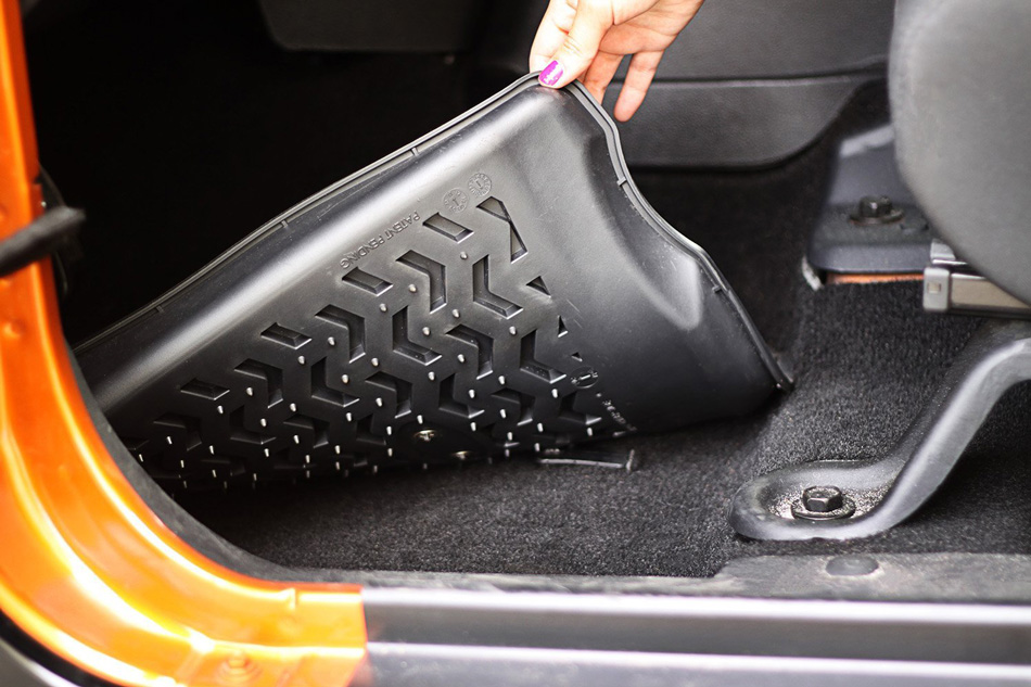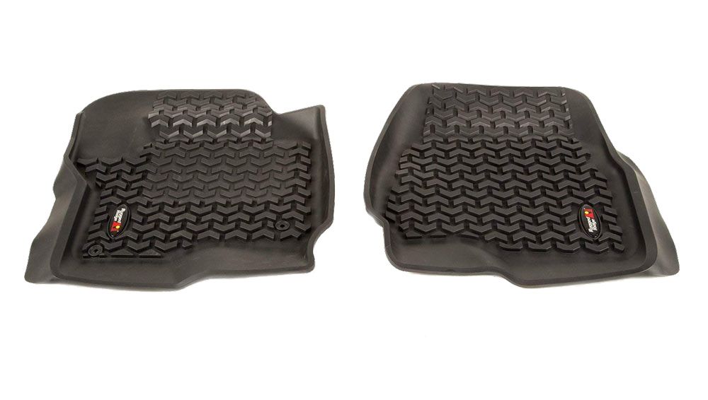 In all terrain and conditions Rugged Ridge has your vehicle covered. Rugged Ridge Floor liners provide complete protection for the cabin floor of your vehicle while keeping it looking factory fresh. Each liner is perfectly contoured to your vehicle's floor for precise secure fitment (floor hook attachment where applicable). The raised lip captures all spills, water and debris keeping your interior pristine. The Chevron-shape patented Deep Tread Technology channels liquid away from your shoes keeping them dry. Made of a durable OE-quality Thermoplastic material that can withstand the rigor of daily abuse.