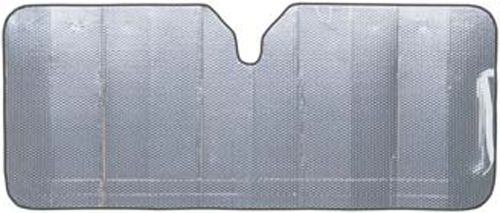 The Sunblock Silver 3 Layer Accordion Sunshade is a 3 layer sunshade that uses two reflective layers of mylar around an extra thick air insulator to provide up to 10 times more rigidity than a basic 2 layer shade. The sunshade includes nine clips that are positioned one time, adjusting the height of the shade to the exact size of your windshield.