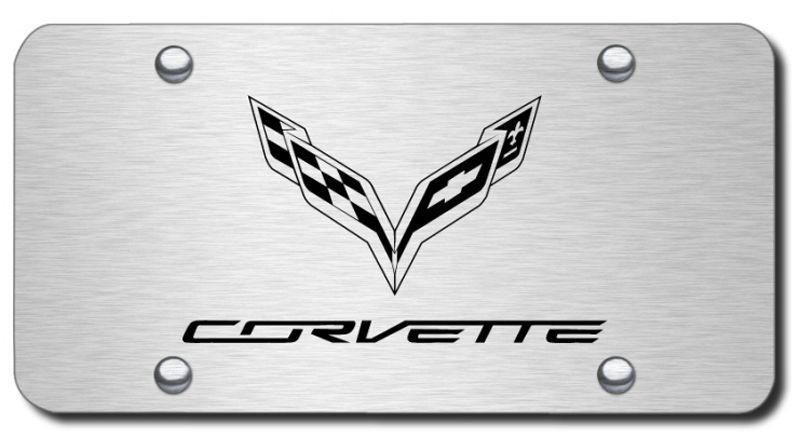Laser Etched Corvette C7 Logo Stainless Steel License Plate |
