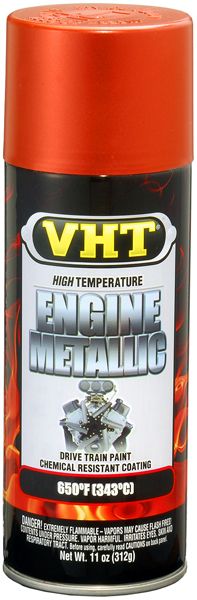 The VHT Engine Metallic™ Fire Engine Red Paint is formulated for high temperature and high performance applications. It creates a cool sparkling metallic finish and withstands intermittent temperatures of up to 650°F (343°C). A unique formulation of urethane and ceramic resins produces a tough and long lasting finish for engines, engine accessories, or any other surface that requires a durable, heat and chemical resistant finish.