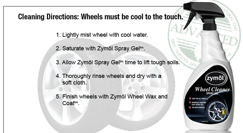 Brake dust will permanently damage the finish on your wheels. The adhesive used to mould brake pads will etch and pit the wheels if you allow it to remain in contact with your heated wheel surfaces. Zymol Brite is a non-corrosive, phosphorous-free wheel wash that is 100% safe for all chrome, painted, coated alloy, aluminum or steel wheels.